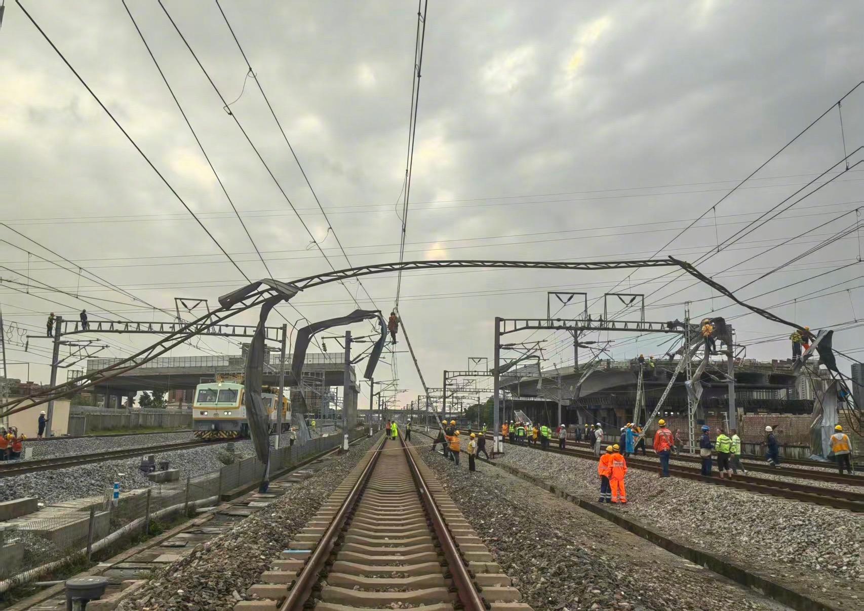 就在前一天下午,大风将铁路沿线一处彩钢瓦棚顶连同30多米长的钢架梁一起吹至高铁接触网,导致南广高铁、贵广高铁广州南至佛山西站间和广湛高铁佛山至荔湾所间接触网挂异物停电,部分列车出现不同程度晚点、停运。